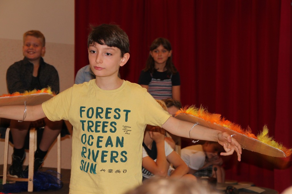 Eine tolle Einschulung. Die Kinder der Klassen 4a und 4b haben ein afrikanisches Einschulungsstück vorbereitet. Die Geschichte der bunten Vögel, zeigt wie wichtig es ist zusammen zu halten. Gemeinsam ist man stark und erreicht viel mehr. Den Erstklässlern hat es sehr gut gefallen. Und endlich durften auch Geschwister und Großeltern wieder dabei sein.
