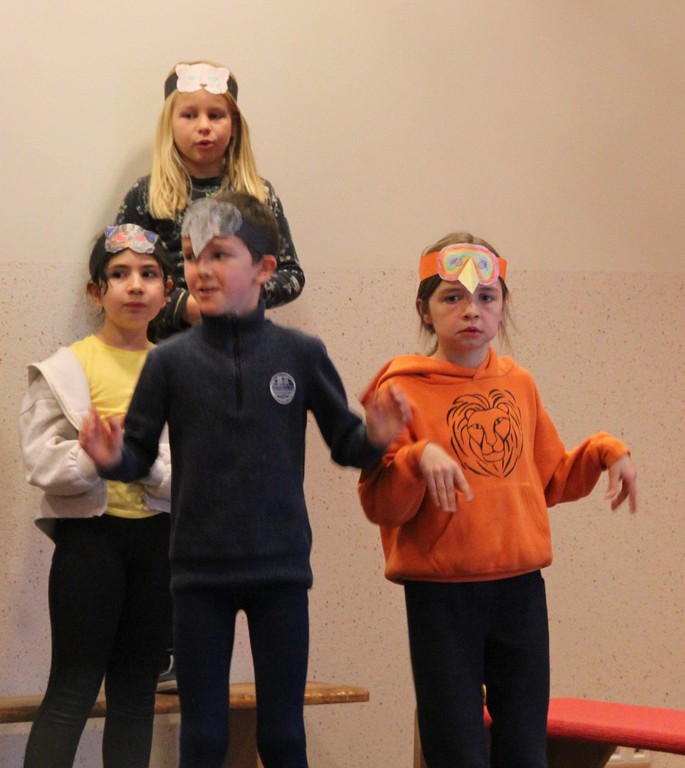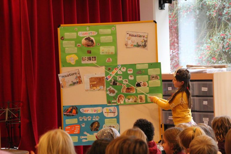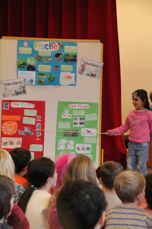 Die Kinder der 2a haben sich im Sachunterricht mit dem Thema Haustiere beschäftigt. In verschiedenen Gruppen haben sie ihre Ergebnisse zu den einzelnen Tieren präsentiert. Zu jedem Haustier wurde ein toll gestaltetes Plakat gezeigt und genau erklärt. Zur Auflockerung gab es ein Tierorchester mit verschiedenen Klanginstrumen-ten. Die Röwelöwen haben "Pummel, den Pudel" kennengelernt, Beides sehr lustige schwungvolle Lieder. Ein tolles Forum!