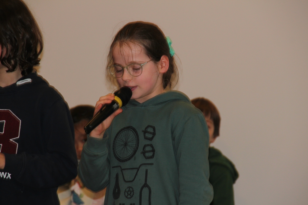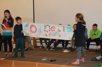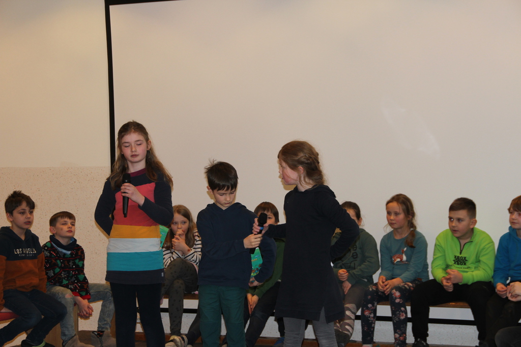 Die Kinder aus der 3b haben das Buch "Lilli und Flosse" von Cornelia Funke vorgestellt. Dieses Buch haben sie als Ganzschrift im Deutschunterricht gelesen. Einige Kinder stellten ihre Lapbooks zum Thema Wald vor. Es wurde ein flottes Lied geschmettert. Die Kinder haben sich im Kunstunterricht mit Vincent van Gogh beschäftigt und das berühmtes Bild "Starry Night" nachgestrichelt. Es sind schöne Bilder geworden. Zum Schluss wurde auf dem Beamer das Musikstück "Vincent" von Don Mc Lean abgespielt.
