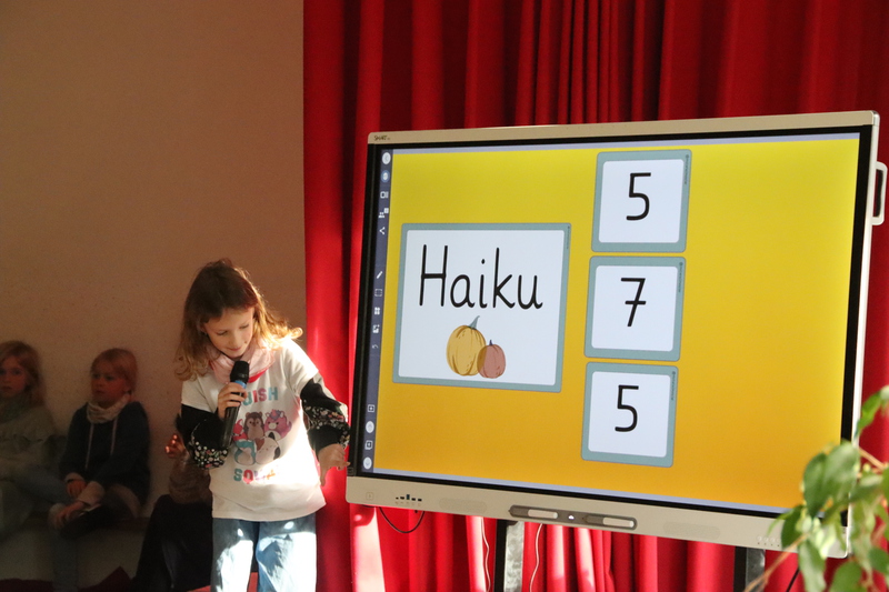 Die Klasse 3b hat ein sehr abwechslungsreiches Forum zum Thema "Herbst" gestaltet. Es wurden verschiedene Gedichtformen spannend mit vielen guten Beispielen präsentiert. Der flotte Regenschirmtanz zum Abschluss war sehr schön anzuschauen.