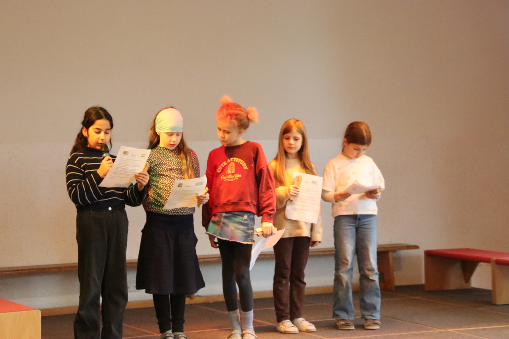 Unser Projekttag zum Thema Klimagerechtigkeit. Es wurde in allen Klassen zum Thema "Klimagerechtigkeit" der Altersstufe angemessen gearbeitet. Exemplarisch wurden fünf Kinder aus fünf verschiedenen Ländern unter die Lupe genommen. Es wurde genau geguckt wie diese Kinder leben und deren Lebensweise verglichen. Z.B wie viel Kleidung, Nahrung diese Kinder besitzen und wie hoch der CO2 Fußabdruck ist. Im Forum wurden dann die einzelnen Ergebnisse vorgestellt.