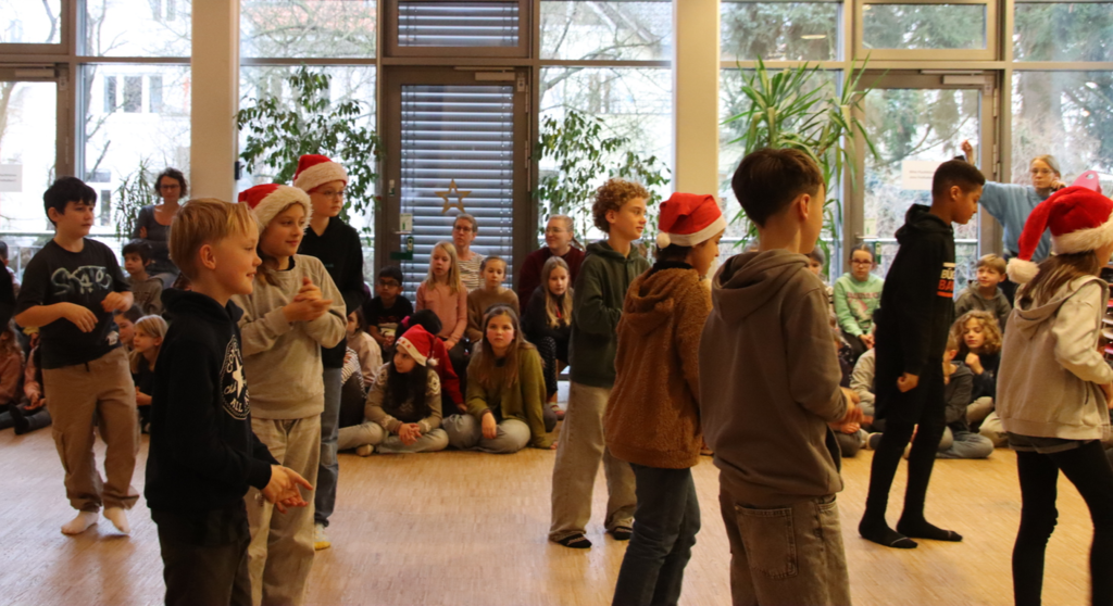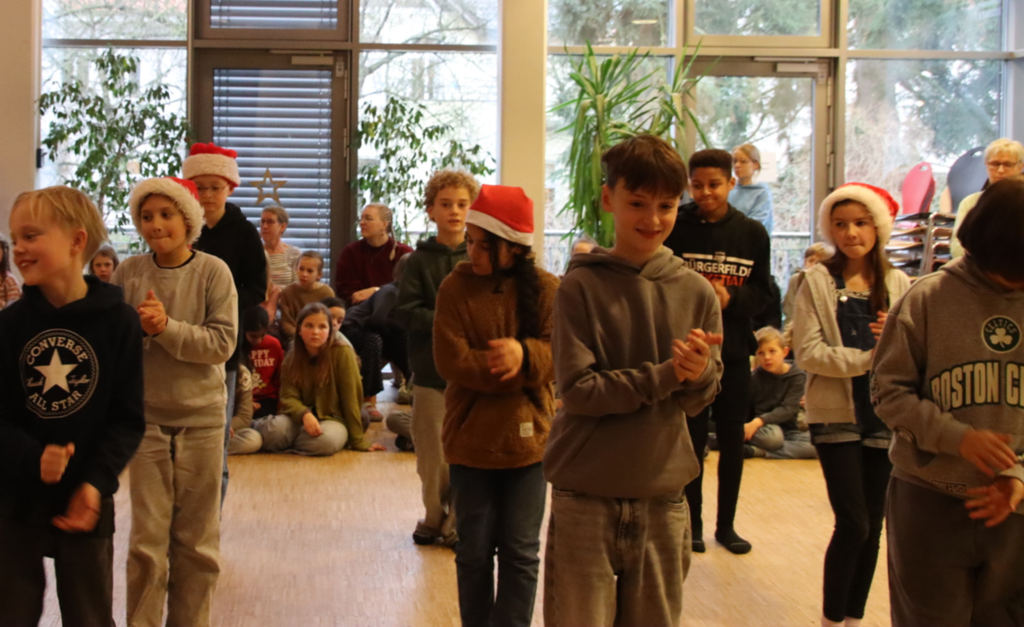 Auch im Adventsforum der B-Klassen wurde viel gesungen und getanzt. Der Song "Last Christmas" von Wham durfte nicht fehlen. Es wurden Gedichte von der 3b vorgretragen. Die 4b hat nach einem alten irischen Song "Christmas in the Old Man`s Hat" einen Line Dance getanzt. Alle Kinder waren schon in freudiger Aufregung. Weihnachten und Ferien besser kann es ja nicht sein.