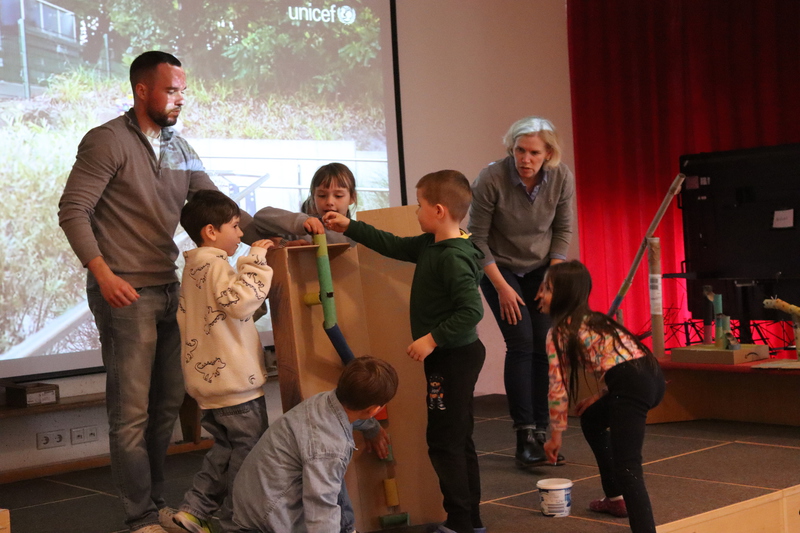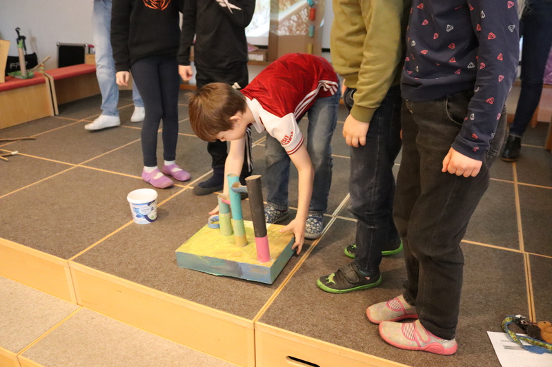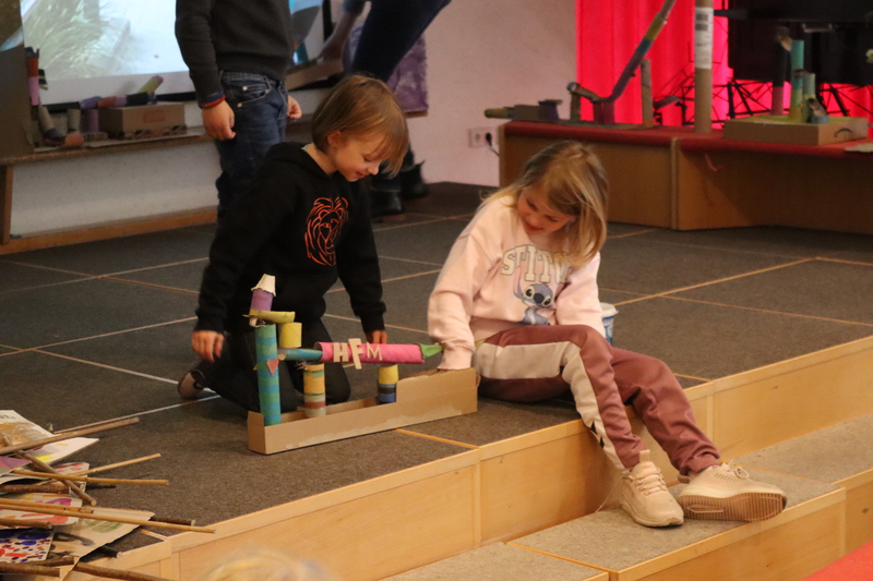 Die jüngeren Röwelöwen haben zum "Recht auf Spiel und Freizeit" tolle Murmelbahnen gebaut.