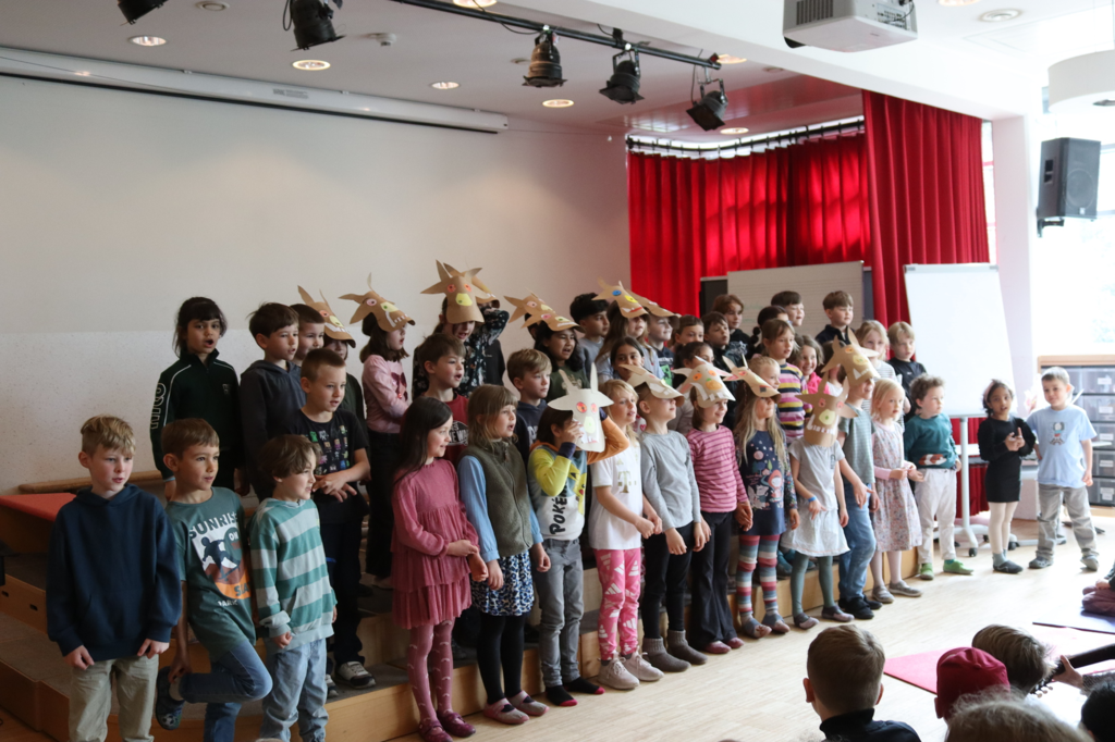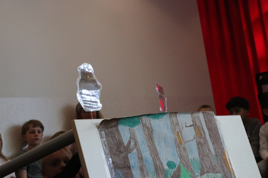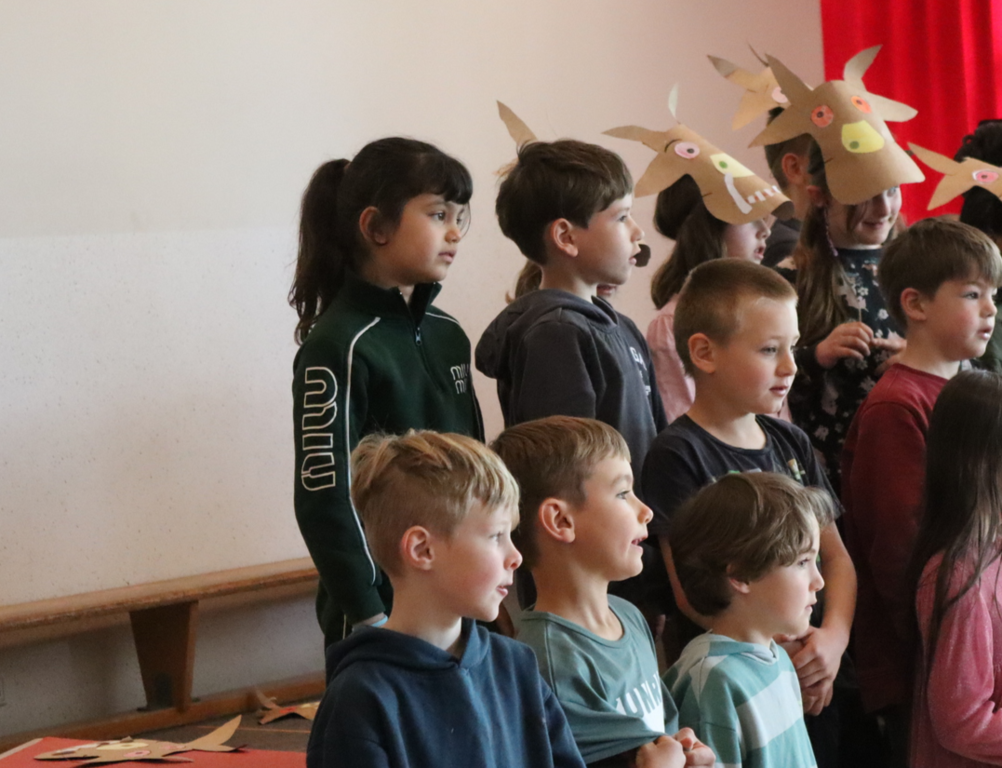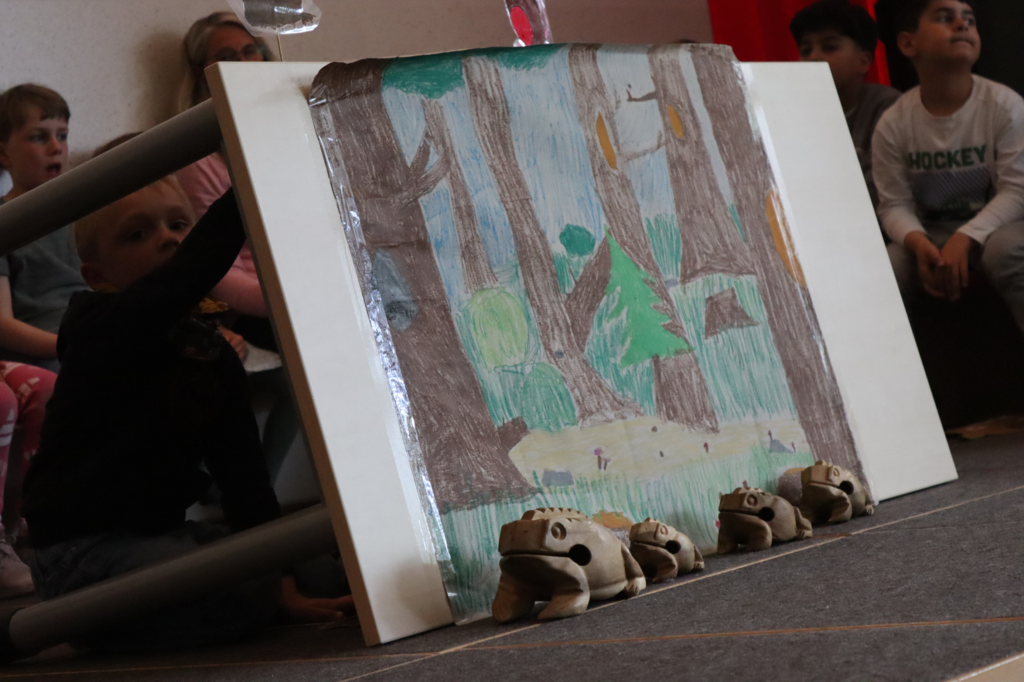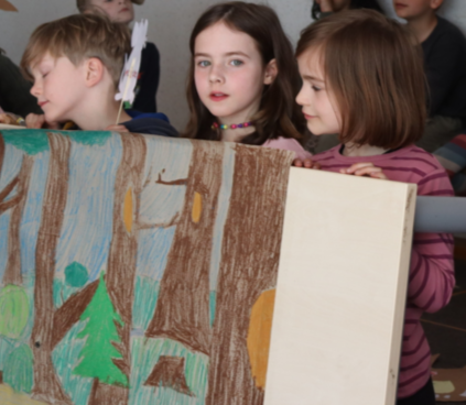 Die Klasse 1a hat in ihrem ersten Forum ein Stabpuppenspiel vom "Grüffelo" gezeigt. Alle waren sehr aufgeregt! Es wurde die Geschichte einer Maus erzählt, die im Wald lebt. Sie erfindet den anderen Tieren gegenüber ein Ungeheuer namens "Grüffelo", damit diese in Ruhe gelassen wird. Tatsächlich trifft sie später auf den Grüffelo. Eine sehr lustige Geschichte - toll vorgetragen und mit schönen Liedern ergänzt. Die Klasse 1b hat bei den Liedern schön mitgesungen und unterstützt.